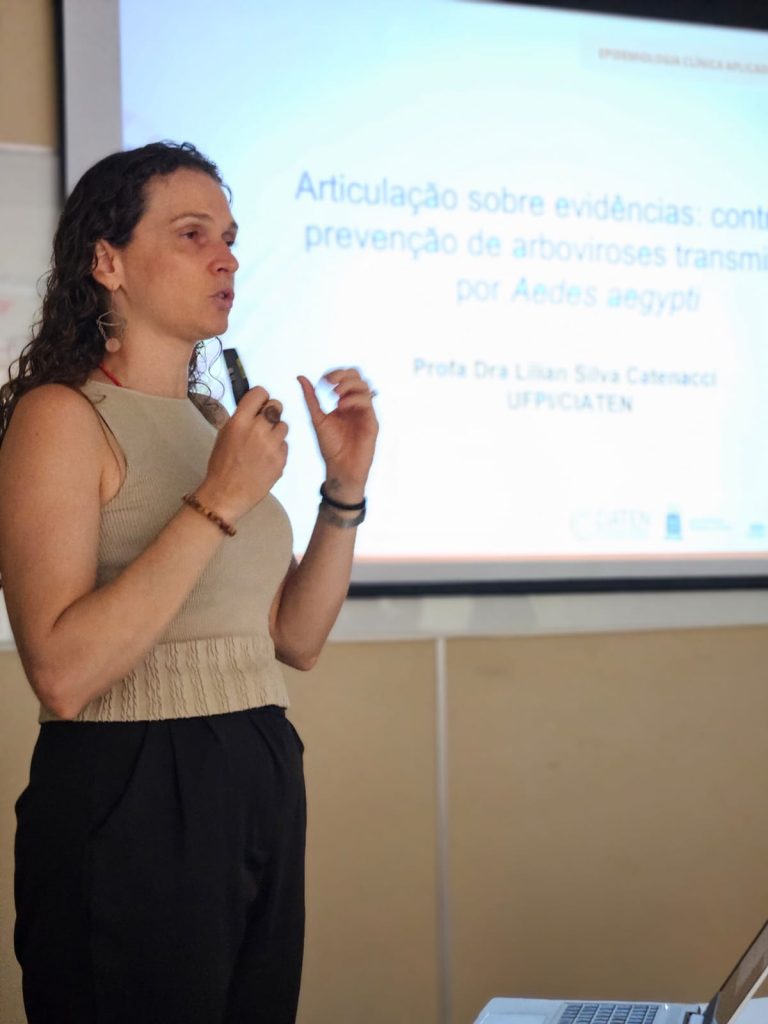 Em seguida, pesquisadores do CIATEN-UFPI apresentaram mapas de evidências científicas desenvolvidos em um projeto financiado pelo Ministério da Saúde e pelo CNPq, sob coordenação dos professores Prof. Dr. Bruno Guedes, Prof. Dr. Fábio Solon, Profª Drª Olivia Dias, Prof. Dr. Márcio Mascarenhas e Profª Drª Lilian Catenacci. Os materiais sintetizam estratégias de prevenção, diagnóstico, manejo e vigilância para quatro grandes temas prioritários: